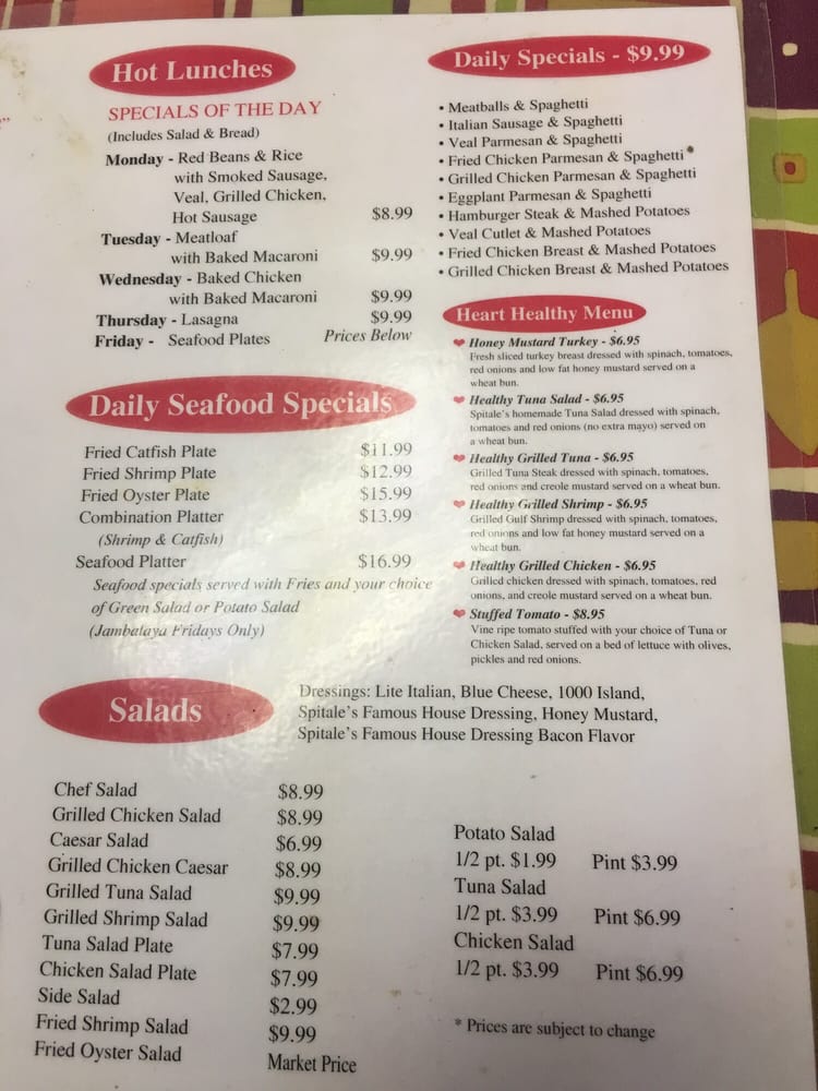 Spitale's Deli & Catering, located in Metairie, LA, offers a diverse menu of New American cuisine. The restaurant provides a range of amenities including delivery, takeout, reservations, catering services, and a full bar with happy hour specials. Customers rave about the flavorful dishes, such as meatballs and spaghetti, patty melt, combo po'boy, red beans and rice, and meatball subs. The ambiance is described as family-oriented, with top-notch customer service. The clean and welcoming atmosphere, paired with delicious meals like roast beef sandwiches and debris fries, makes Spitale's Deli & Catering a must-visit spot. The focus on quality ingredients and generous portions leaves customers satisfied and eager to return for more. This deli truly captures the essence of New Orleans cuisine with each bite.